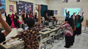 Pemateri pada diklat kali ini adalah Bapak Candra Kurniawan, guru TIK Spada Jaya. Dalam penyampaian materi, beliau mengupas bagaimana memanfaatkan AI untuk jurnalistik, membuat desain flyer, web dan hosting, video OBS, dan poster untuk beberapa kegiatan.