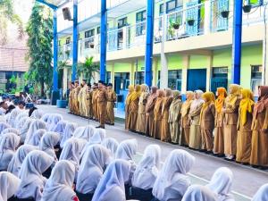 Memasuki hari pertama kegiatan pembelajaran Senin, 30 Maret 2026 diawali halal bihalal bersama siswa dengan hikmah halal bihalal disampaikan Yuyun Wahyudin, M.PdI. yang mengingatkan kebiasaan setelah halal bihalal ada empat hal sebagai instrospeksi diri menapaki perjalanan hidup ke depan. Empat hal tersebut diharapkan pada diri siswa mampu terciptanya karakter baru, tombol reset, stop canda berlebihan, dan upgrade kebiasaan positif.