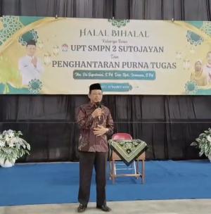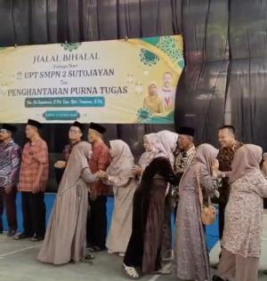 Satu tahun bercengkrama yang tak lepas dari khilaf dan dosa sudah selayaknya dilebur sebagai konsekwensi hak adam. Momen Idul Fitri kembali suci dimanfaatkan oleh keluarga besar UPT SMPN 2 Sutojayan untuk melestarikan tradisi halal bihalal.
